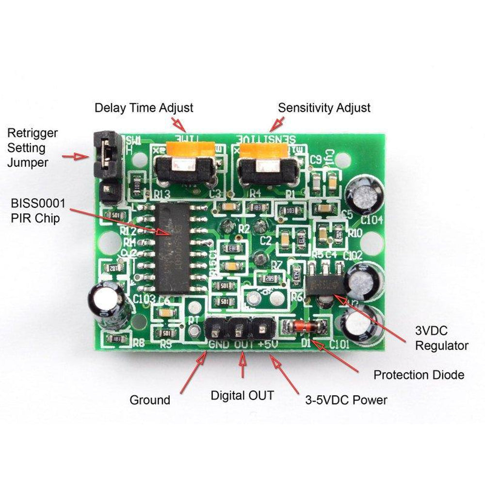 The HC-SR501 is a compact and highly efficient pir sensor module designed for detecting human motion. It captures changes in infrared radiation emitted by moving objects within its active range, making it a reliable pir motion sensor for automation tasks. Because the hc sr501 includes adjustable sensitivity and timing controls, users can fine-tune detection performance across a wide range of applications.Operating at 5V DC, this pir sensor is commonly used in security alarms, automatic lighting, and home automation projects. With a detection distance of up to 7 meters depending on conditions, the hc sr501 integrates seamlessly with popular platforms such as Arduino and Raspberry Pi. Its low power consumption also makes it suitable for portable or battery-powered devices, where a pir motion sensor must remain energy-efficient.