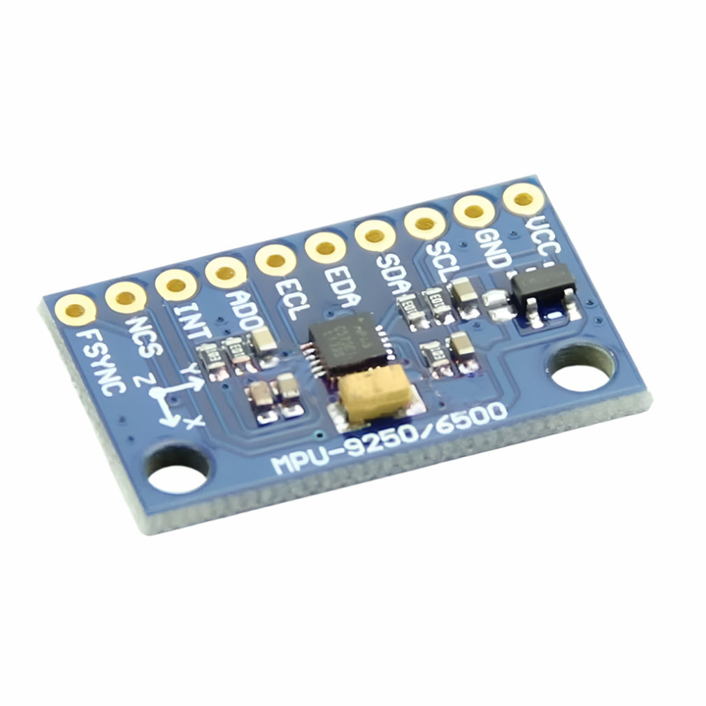 The MPU6500 sensor offers precise motion tracking and is widely used as a reliable multi axis accelerometer paired with a multi axis gyroscope. It provides stable performance similar to an original gyroscope module while delivering accurate sensing in robotics and electronics. MPU6500 Gyroscope/Accelerometer/Digital Motion Processor (DMP) 6-axis Motion Sensor with I2C/SPI Interface features the MPU-6500, which is a multi-chip module (MCM) consisting of two dies integrated into a single QFN package. It houses the accelerometer and gyroscope, making it a powerful multi axis accelerometer solution along with strong rotational sensing like an original gyroscope. It is based on I2C Address, Address: 0x68 by default, 0x69 if AD0 is pulled high. The MPU-9250 also features an embedded temperature sensor. This compact motion sensor works well as a multi axis accelerometer for gesture recognition and as a stable multi axis gyroscope alternative for precise rotational feedback. This module includes pull-up resistors on the SDA, SCL, and nCS lines, pull-down resistors on the FSYNC and AD0 lines, and an onboard 3.3V voltage regulator allowing you to power the module from 5V sources such as an Arduino. If you desire to power the module from 3.3V you can bridge the solder jumper next to the voltage regulator to bypass the regulator.Technical Details