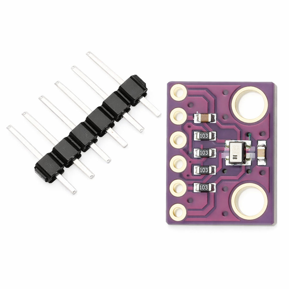The GY-BMP280-3.3 sensor module is a compact and high-precision breakout board based on the Bosch Sensortec BMP280 sensor. It is designed for accurate measurement of atmospheric pressure, temperature, and altitude, making it ideal for weather monitoring, altitude tracking, drones, and embedded electronics projects.This module supports both I2C and SPI digital interfaces and includes onboard pull-up resistors, selectable I2C address jumper, and power rail configuration options. It is optimized for low power consumption while maintaining excellent measurement accuracy.