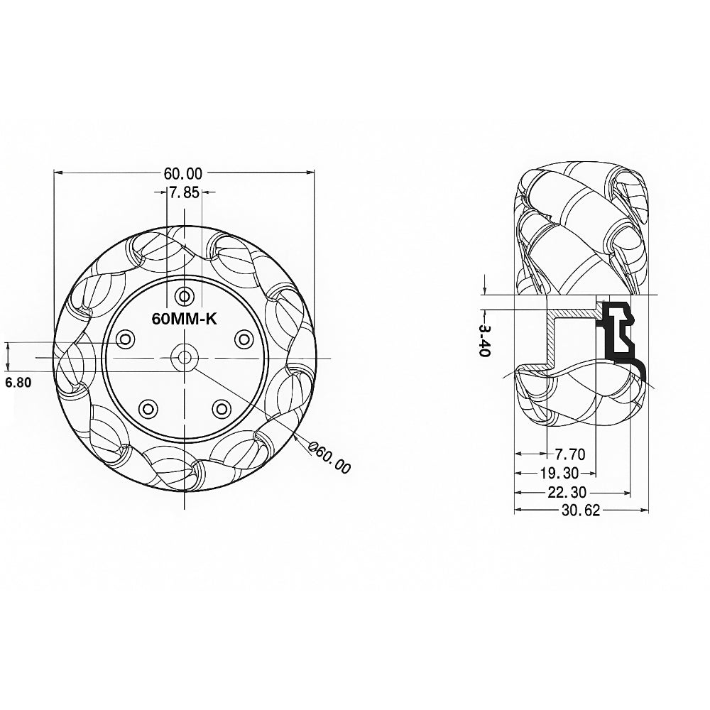 The 60mm wheel pair is engineered for robots that require highly agile motion using advanced omnidirectional wheels. This set delivers smooth movement in tight environments, and when combined with 4 mecanum wheels it forms a complete mobility platform. Its angled rollers enable precise directional control, making it ideal for a mecanum wheel robot arduino build or STEM-based robotics experiments. This compact and durable pair helps users develop reliable omnidirectional wheels systems for prototyping, warehouse mobility, and competitive robotics.Design & Functionality
