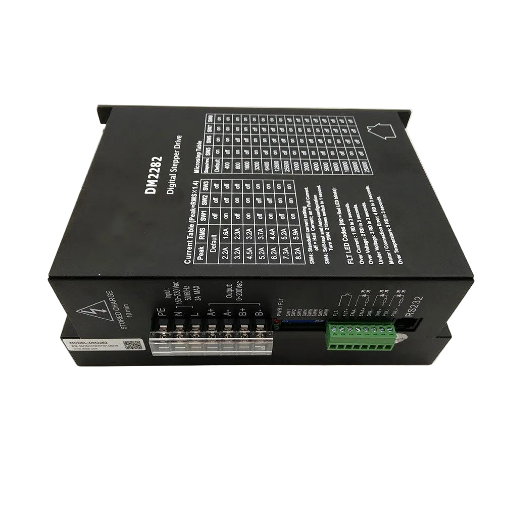 DM2282 Digital Stepper Motor Driver is a high-power, DSP-based microstepping driver engineered for precise and smooth control of 2-phase bipolar stepper motors. Supporting direct 150–220V AC input, it eliminates the need for an external SMPS and delivers stable performance for industrial motion-control systems.With adjustable current and microstep settings, opto-isolated control inputs, and comprehensive protection features, the DM2282 is ideal for demanding applications such as CNC routers, laser machines, and automation equipment.