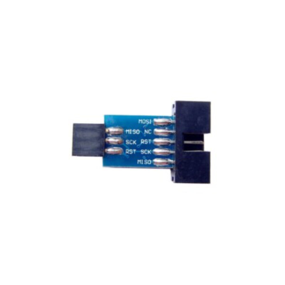 This adapter enables programmers such as USBASP and STK500 to interface with boards that expose a 6-pin ISP header. It is commonly used for bootloader burning and firmware uploading on Arduino and AVR-based development boards.