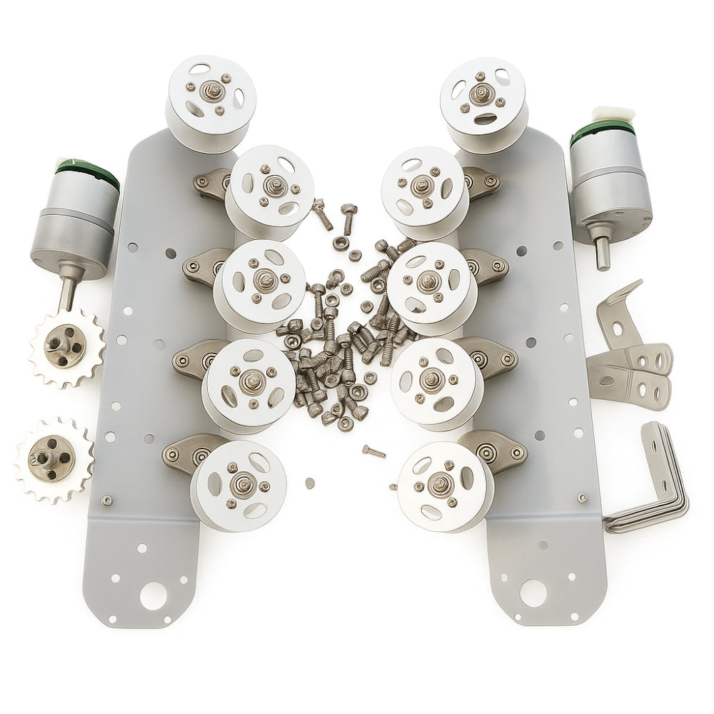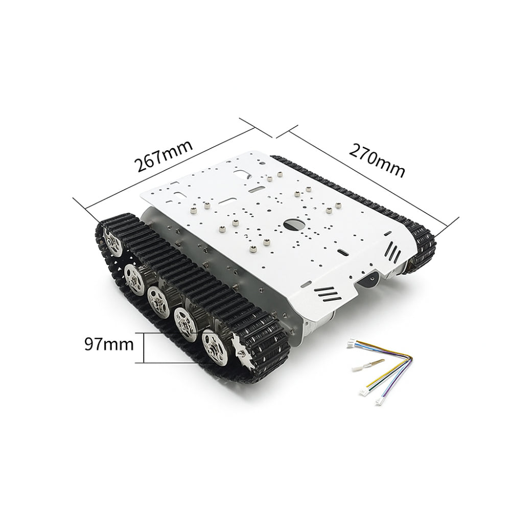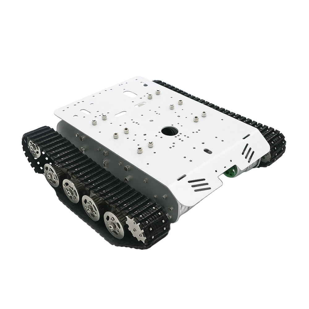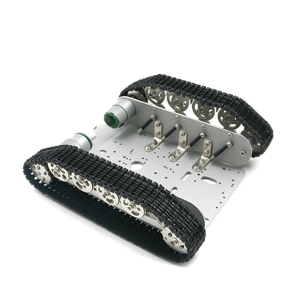 Dual high-torque DC gear motors power each track independently, making the chassis suitable for sensor-based navigation, AI-driven control, and structured robotic tasks. Whether for academic labs, hobby building, or a diy robot kit project, this platform delivers smooth movement and reliable ground contact. Its large mounting area makes it easy to add controllers, batteries, cameras, and modules commonly used in robot diy assemblies. Because of its adaptability, it is also an excellent starting point for robot kits for beginners working on tracked robot concepts.