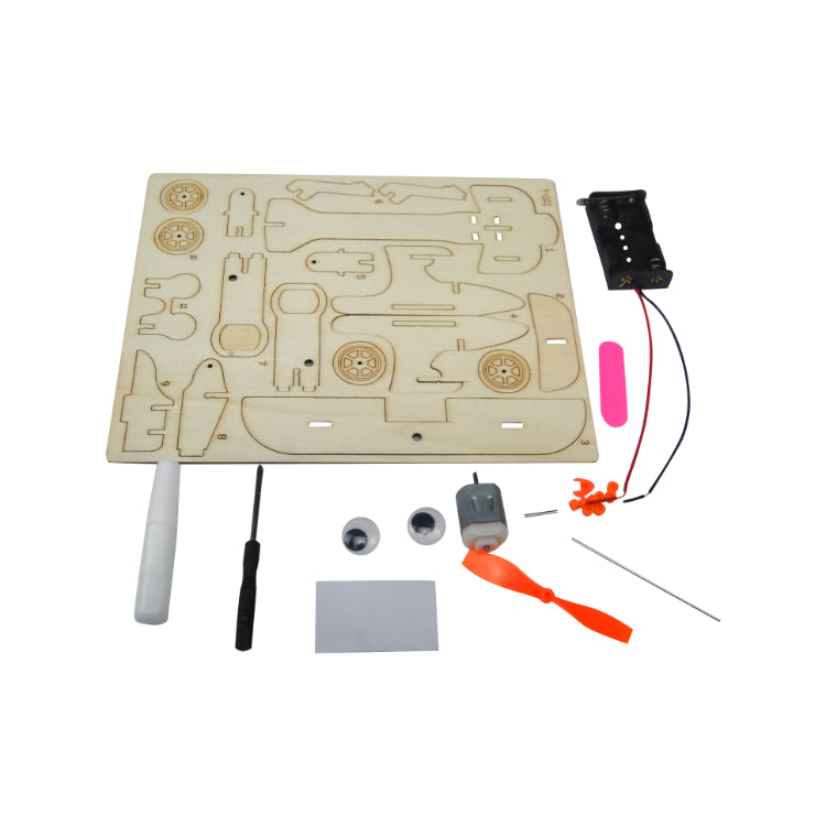 - Laser-cut wooden aircraft body and wings