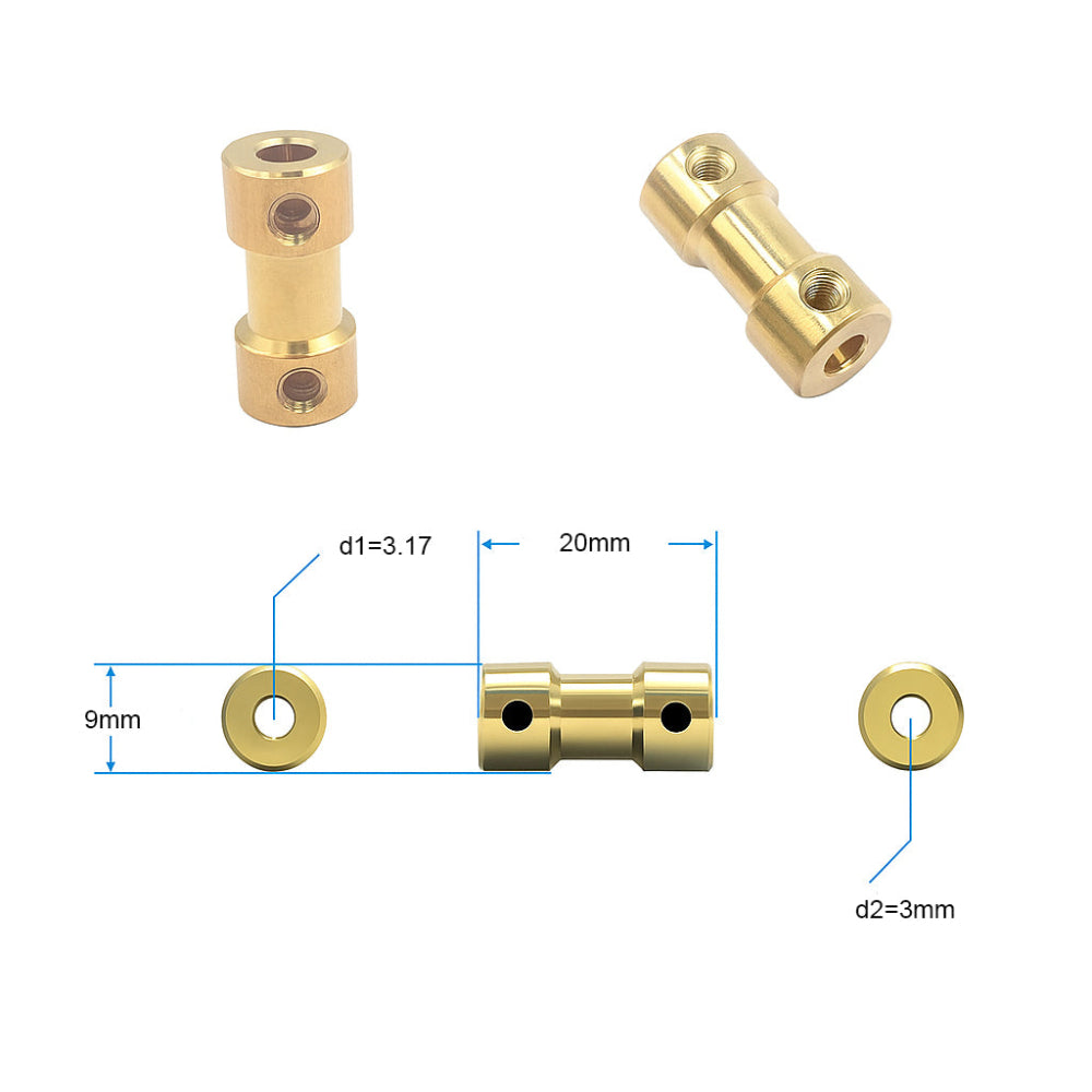 The Double Pass brass adapter coupling 3.17mm × 3mm is a compact solution designed for smooth rotational transfer in tight mechanical assemblies. This coupling supports accurate alignment in precision builds, making it suitable for early-stage prototype setups, small drivetrain mechanisms, and reliable coupling shaft motor integration. It also ensures consistent motion where a stable shaft gear coupling is required.