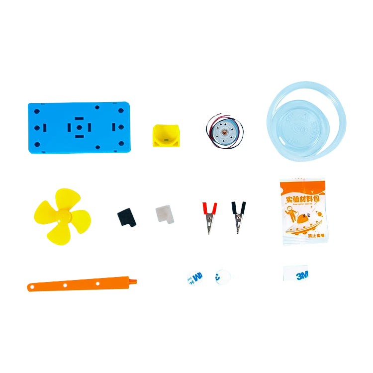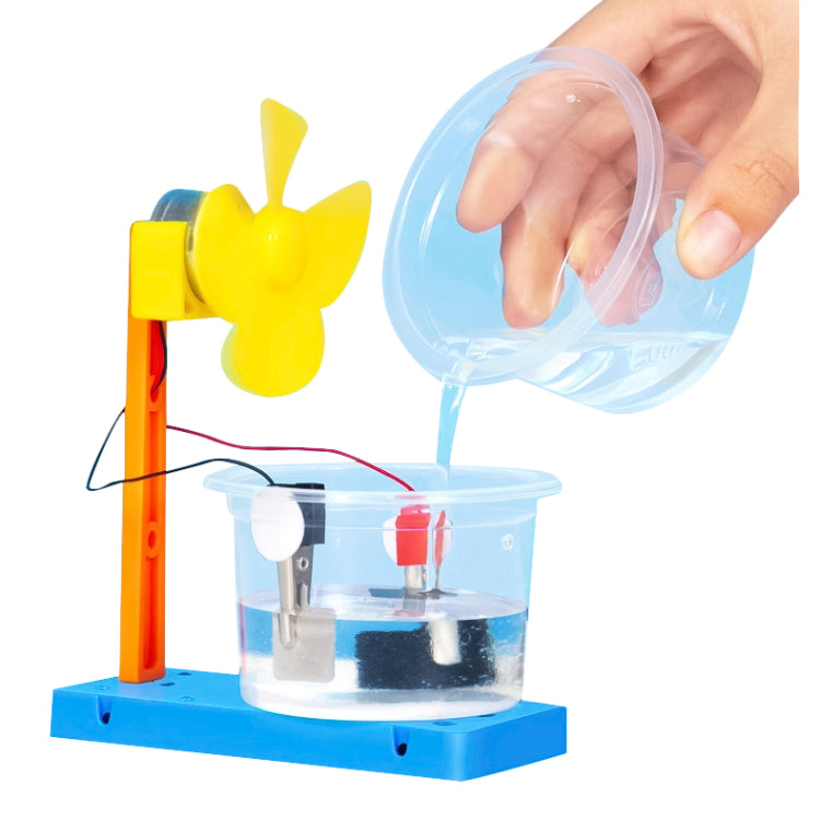 The kit uses two electrodes placed in salt water to produce a small electric current through a chemical reaction. This current powers the motor and spins the fan, making it ideal for explaining energy flow concepts in a water cycle project for class 5 and for demonstrations during a science exhibition for class 7.Advantages of This Science Project