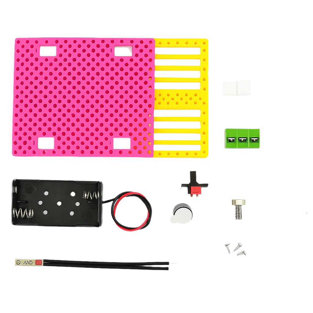 - Base structure: Two perforated plastic boards to support the components.
