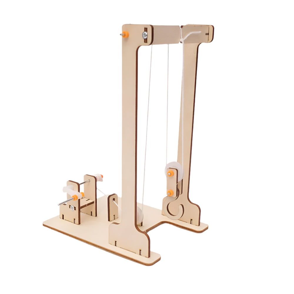 This small science project works on the principle of mechanical advantage. When the hand crank is turned, gears rotate and drive the pulleys. The pulley system distributes the load, allowing objects to be lifted with less force. Through repeated use, learners can clearly observe how small science experiments demonstrate motion, force, and load distribution in real machines.Advantages of This Science Project