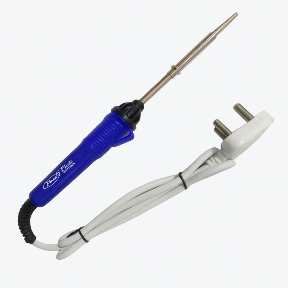 This lightweight 35W soldering iron is designed for precise and efficient soldering operations in electronics, DIY projects, and repair applications. It features a high-quality heating element that quickly reaches a stable operating temperature, allowing smooth and consistent soldering.The ergonomic handle ensures a firm and comfortable grip, reducing hand fatigue during long working sessions. Its compact size makes it ideal for delicate component soldering and compact workspace environments.
