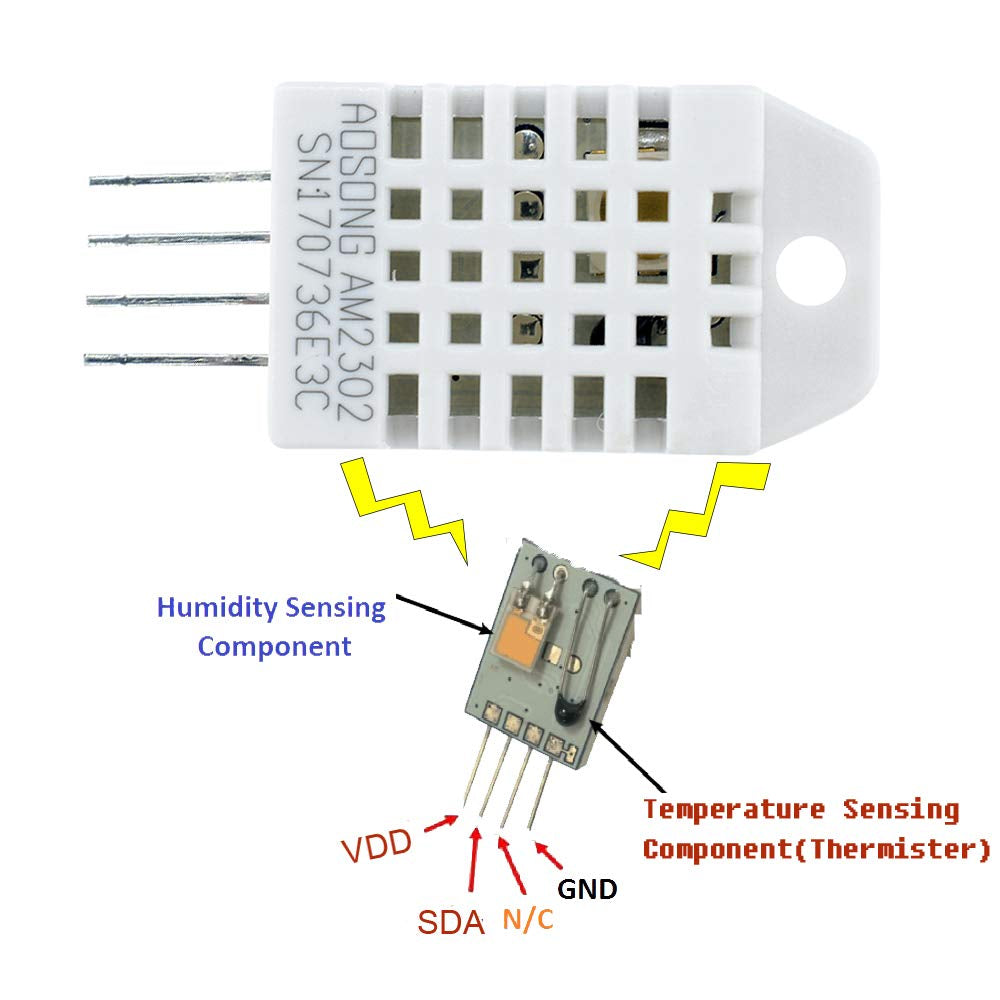 This dht22 am2302 module is simple to use although it requires consistent timing to retrieve data accurately. Another important note is its two-second refresh rate, meaning the latest reading may have a short delay. Connecting the sensor is straightforward: connect the first pin to 3–5V power, the second pin to your microcontroller data pin, and the rightmost pin to ground. Despite using a single communication wire, it is not Dallas One Wire compatible, so each sensor must have its own data pin.
