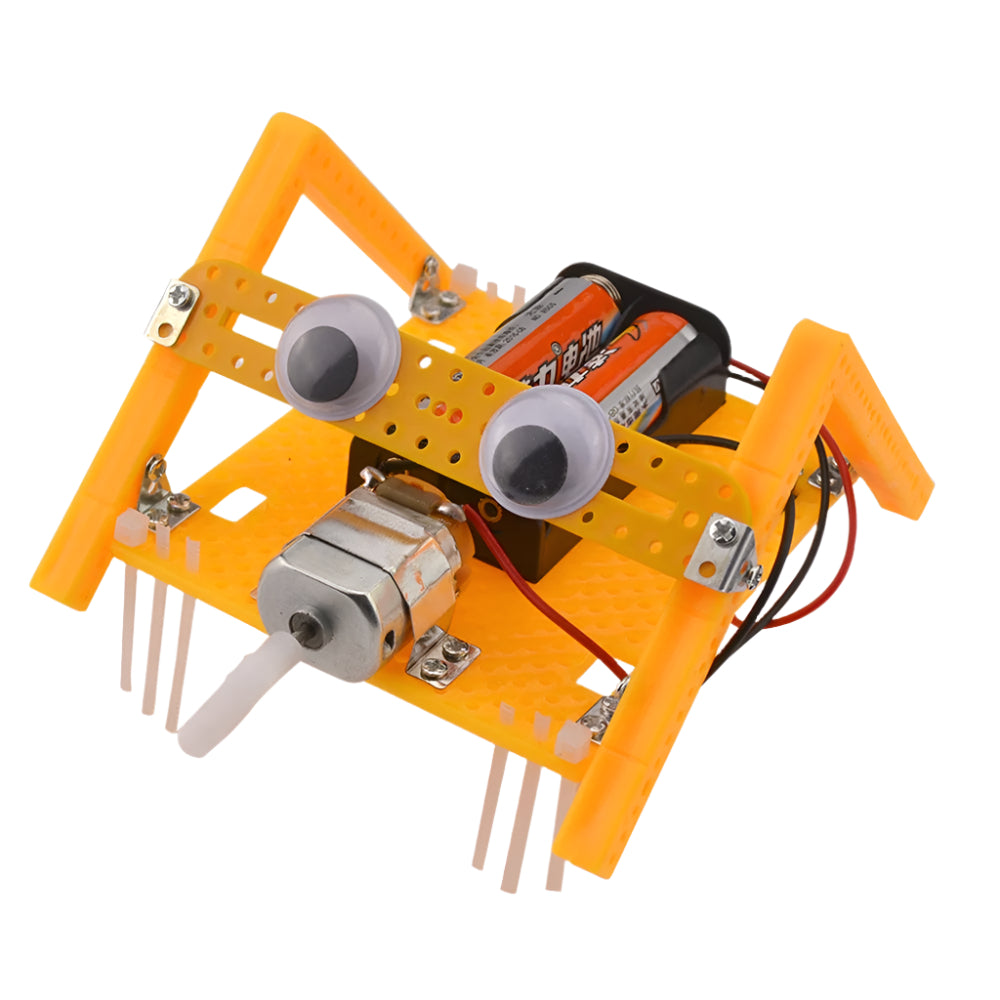 The DIY Multi-Legged Robot moves using vibration generated by a DC motor. When powered, the motor produces oscillations that transfer energy through the robot’s legs, causing forward movement. This simple motion system is commonly explained in air pressure experiments and pairs well with demonstrations such as the candle and water experiment, where changes in force and movement are visually observed.Advantages of This Science Project