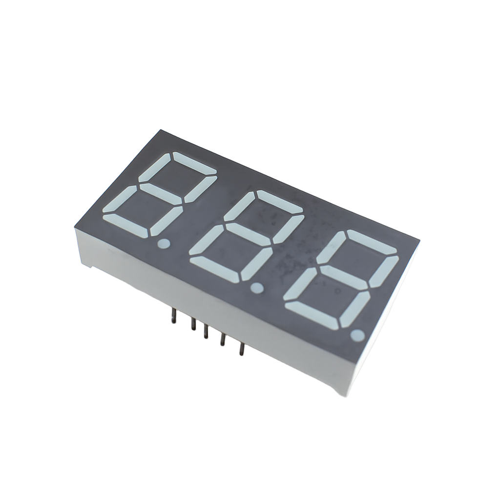 The 0.56 Inch 3-Digit Common Cathode Red 7-Segment Display is a robust, high-visibility solution for numeric indication in electronic circuits. With bright red LED segments and a larger 0.56-inch digit height, it offers excellent readability at a distance. The common cathode configuration enables simple interfacing with popular driver ICs and microcontrollers, making it ideal for prototypes and production designs.Built for reliability and low power consumption, this module is widely used in timers, counters, measurement panels, and other instruments. Its standardized pin layout supports quick wiring and multiplexed driving, while the sturdy package is suitable for panel mounting and space-conscious designs.