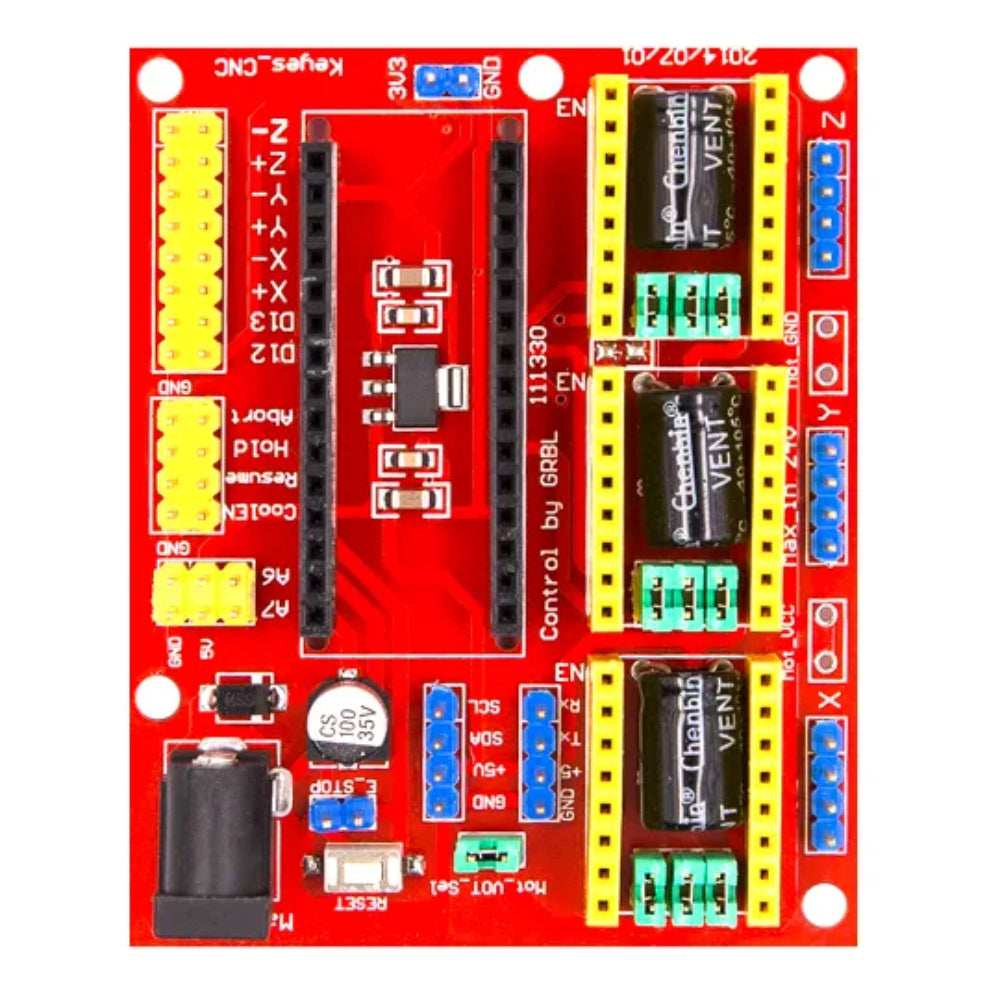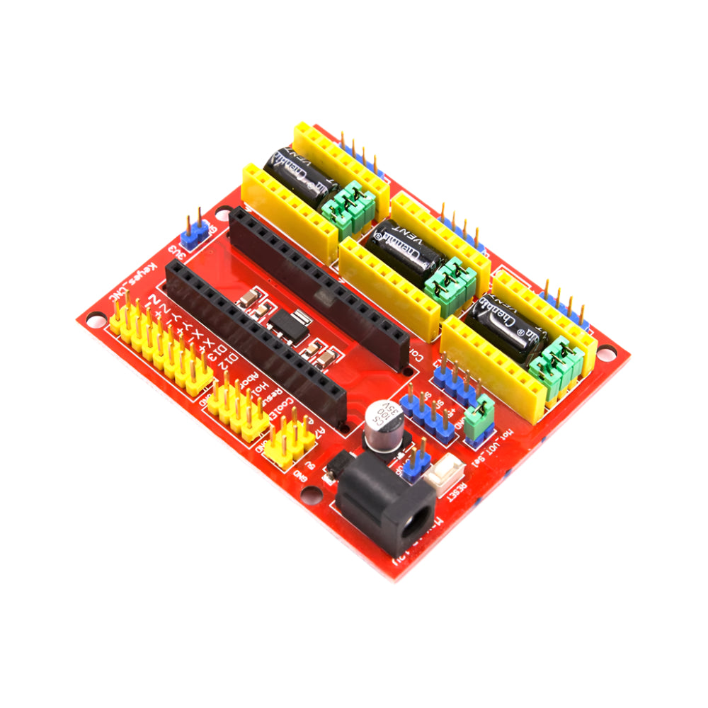 This CNC Shield V4 is a stepper motor driver expansion board designed to work with the Arduino Nano. It is an excellent solution for controlling stepper motors in 3D printers and engraving machines. The shield features 3 channel slots compatible with A4988 stepper motor driver modules (not included), enabling control of up to 3 stepper motors. Each motor requires only 2 IO ports, so just 6 IO ports are needed to drive all three motors, optimizing pin usage efficiently.This shield simplifies stepper motor management, making it ideal for DIY CNC or 3D printer projects. Its compact design and ease of use allow for quick installation and integration, helping you bring motion control to your custom builds with minimal wiring and coding complexity.