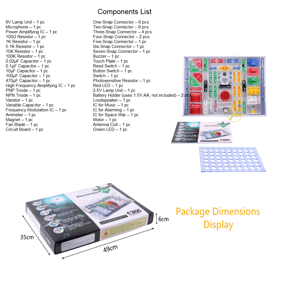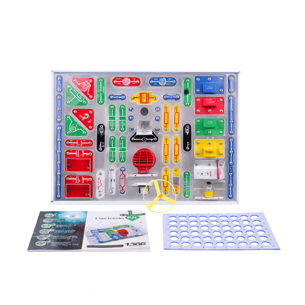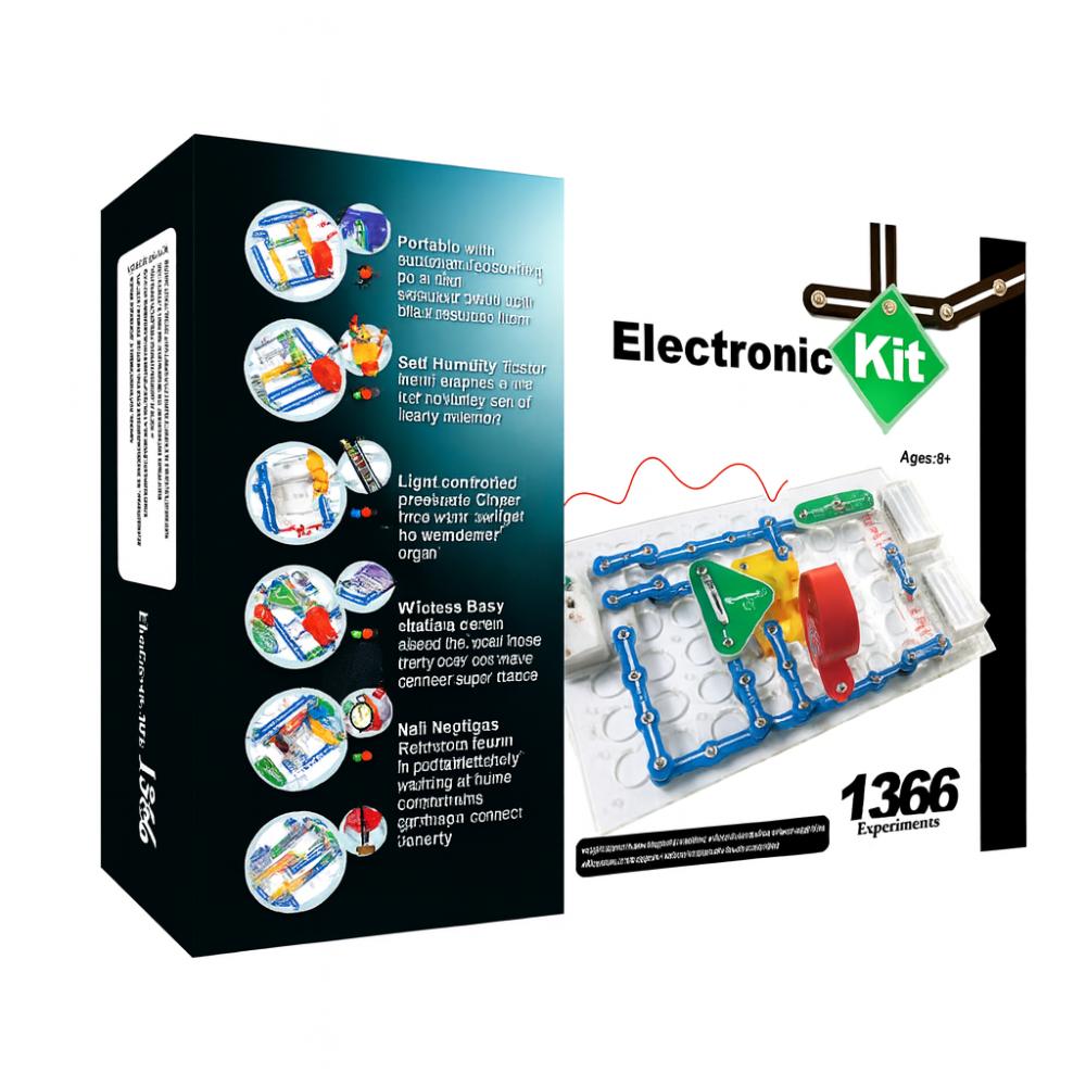 The Electronic Kit 1366 Experiments is one of the most advanced STEM snap-circuit learning systems, designed for students who want to explore, create, and master electronics, sensors, magnetism, sound circuits, logic circuits, motor control, automation, and wireless principles.With an incredible collection of 1366 hands-on experiments, this kit takes learners from simple beginner projects to highly advanced electronic models. Children can build core experiments such as lamp circuits, magnet-controlled lamps, electric fans, flying saucers, LED basics, red-green LED circuits, and even variable-speed fan systems — all using safe snap-together modules without soldering or tools.