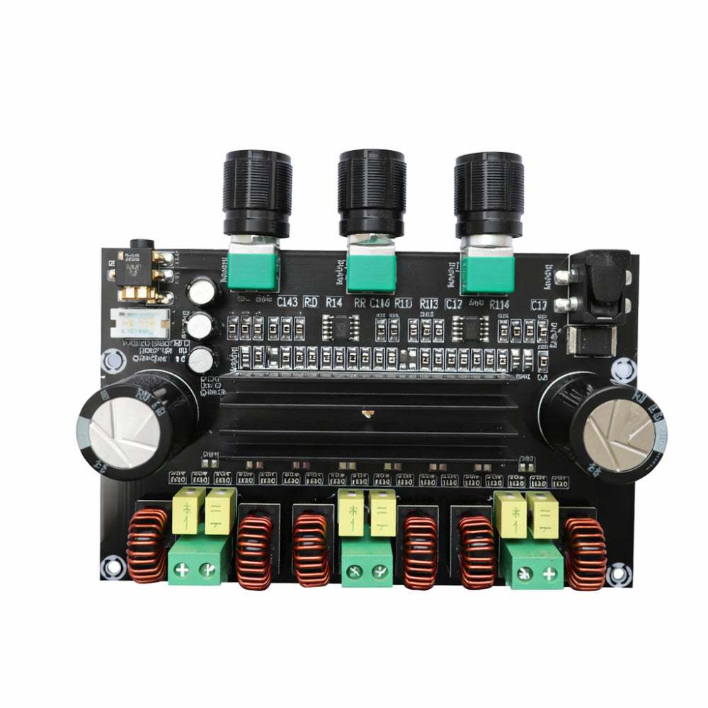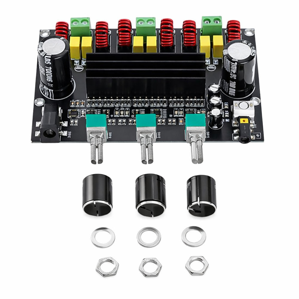 This 2.1 channel Class-D audio amplifier board is designed to deliver powerful and clear sound output for stereo and subwoofer systems. Powered by the TPA3116D2 high-efficiency amplifier chip, it provides 80W + 80W stereo output and a dedicated 100W subwoofer channel.The board supports a wide DC 12V–26V input range (recommended 24V, 3A+) and includes independent controls for stereo volume, subwoofer volume, and master volume. Its compact, lightweight, and durable design makes it an excellent replacement for old or damaged amplifier boards.